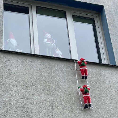 - TWEE KERSTMANS OP EEN LADDER – er werden twee kerstmannen op de ladder geplaatst. Ze klimmen de ladder op. Misschien kloppen ze vandaag wel op je raam!