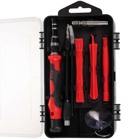 - RIJKE SET 110 st. - De set bevat 110 verschillende gereedschappen, gemaakt van hoogwaardig chroom-vanadiumstaal. Torxy-apparaten zullen het onderhoud en de reparatie mogelijk maken van de meeste kleine elektronische apparaten die op de markt verkrijgbaar zijn, zoals: telefoon, tablet, navigatie, camera, laptop, horloge, bril en vele andere.