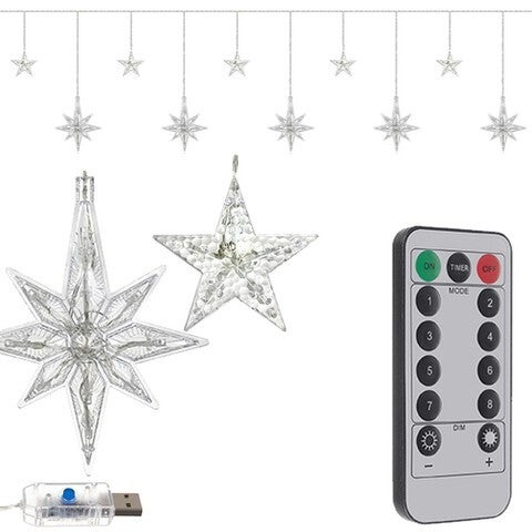 - SPECIFICATIE A - sterkleur: transparant; verlichtingskleur: veelkleurig; aantal lampen: 138 LED; timer 6/18; 8 verlichtingsmodi; 5 lichtintensiteiten; aantal kleine sterren (9 cm): 6 stuks; aantal grote sterren (22 cm): 6 stuks; USB-voeding: 4,5 V; vermogen: 4W; IP20; lamplengte: 3,7 m + 3 m van het netsnoer; gewicht: 0,44 kg; gewicht in de verpakking: 0,552 kg.